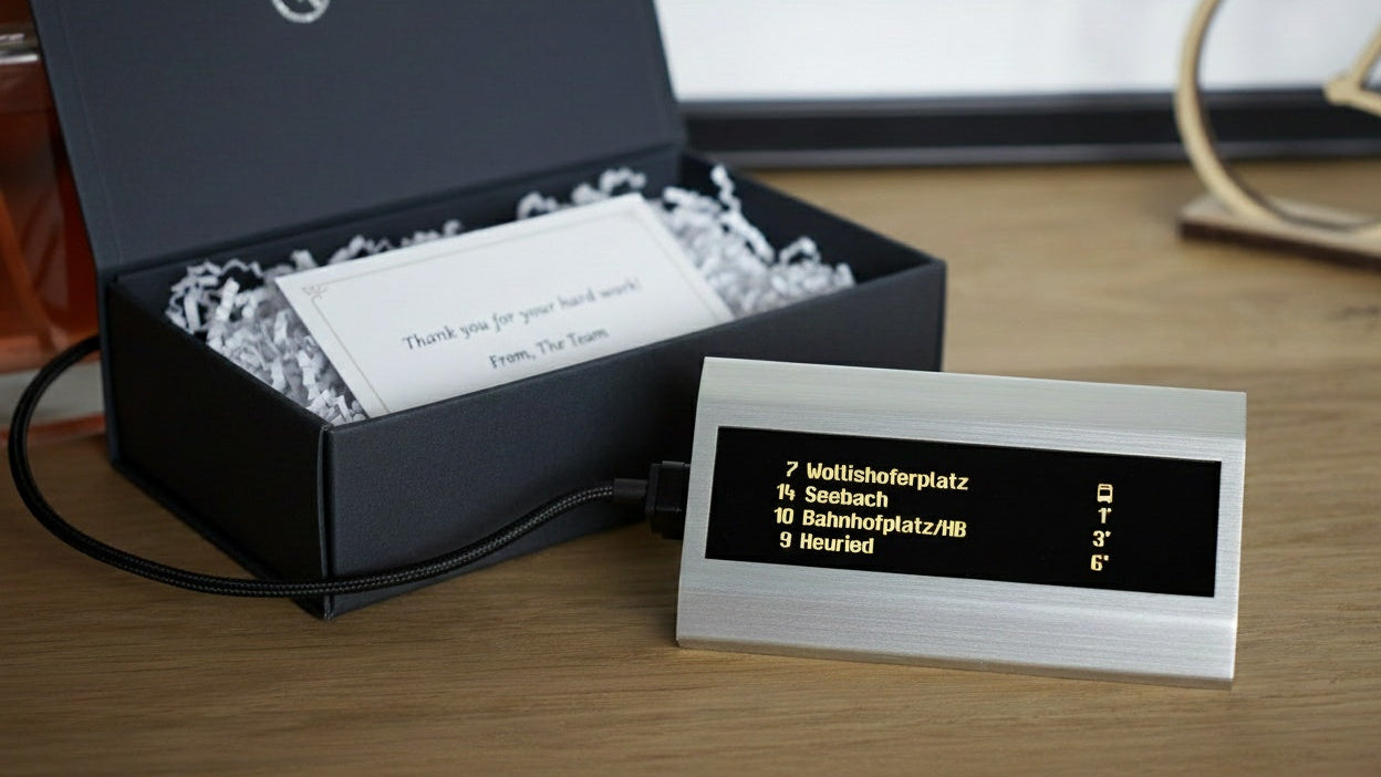 What if a corporate gift could be useful every day and at the same time look iconic? Tramli is a sleek display inspired by Swiss public transport that shows live departures from any stop in the country.